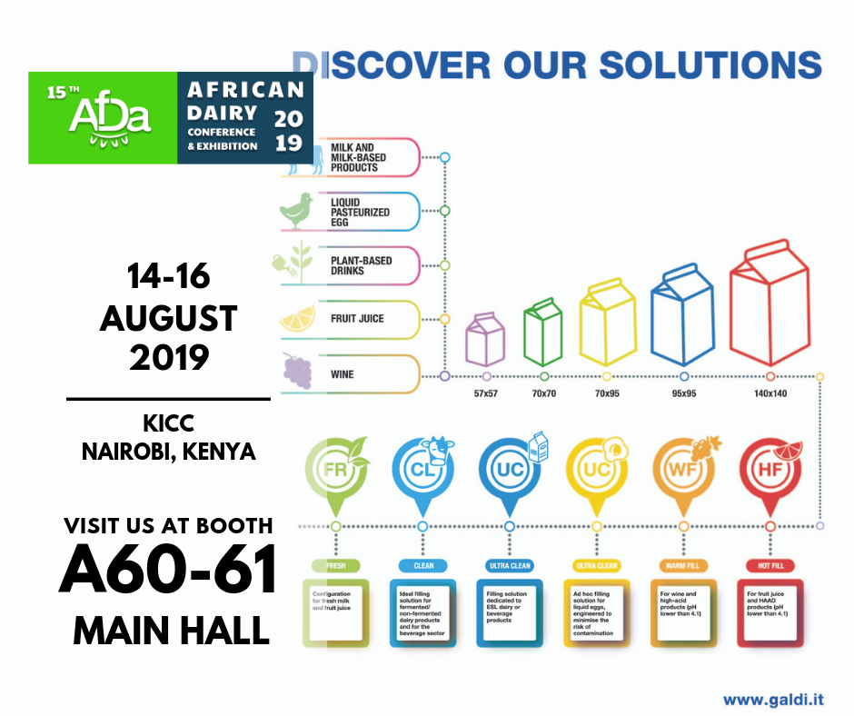 Galdi sarà presente alla African Dairy Conference & Exhibition che si terrà a Nairobi, presso il Keniatta International Convention Center, dal 14 al 16 agosto.