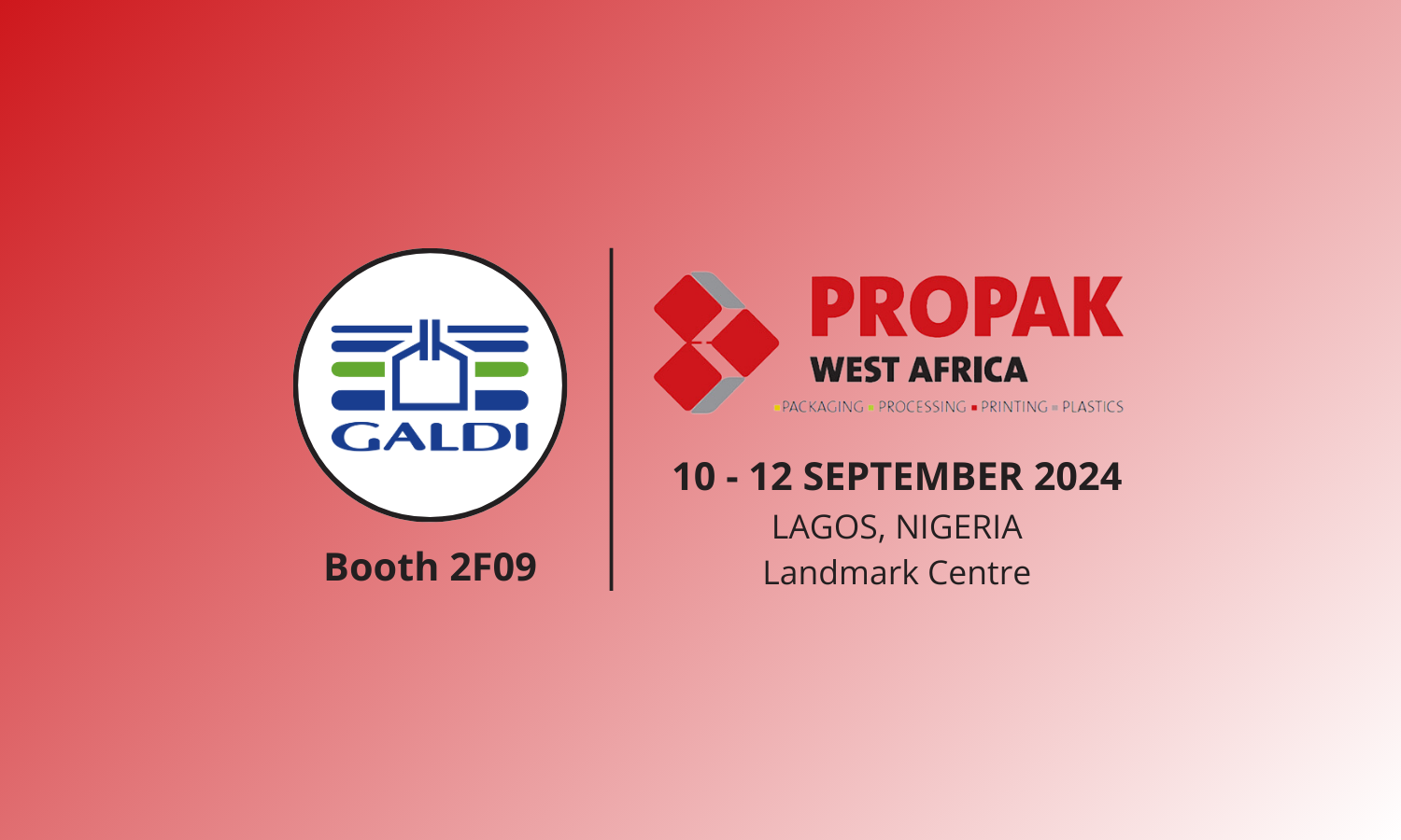Galdi sarà presente alla fiera Propak West Africa che si terrà a Lagos, presso Landmark Center, dal 10 al 12 settembre.